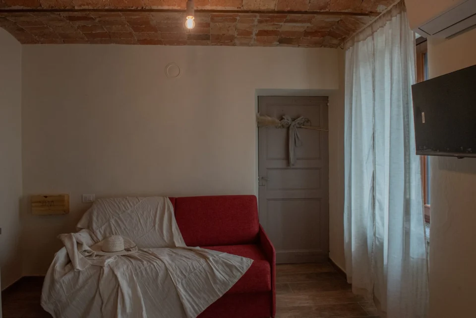 Elegante camera per due con balconcino privato, divano letto, e tutte le comodità moderne. Ideale per un soggiorno romantico e tranquillo.